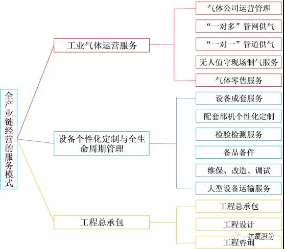 服务型制造是先进制造业和现代服务业深度融合的重要方向,是中国制造增强产业竞争力的重要途径。近年来,杭氧不断在服务型制造领域积极探索、沉淀经验,促进企业高质量发展。“十二五”初确立了“重两头、拓横向、做精品”发展战略,其核心就是在加强空分设备主业发展的同时,向产业链两头延伸,向上重点发展工程总包业务,向下重点发展气体运营服务业务。